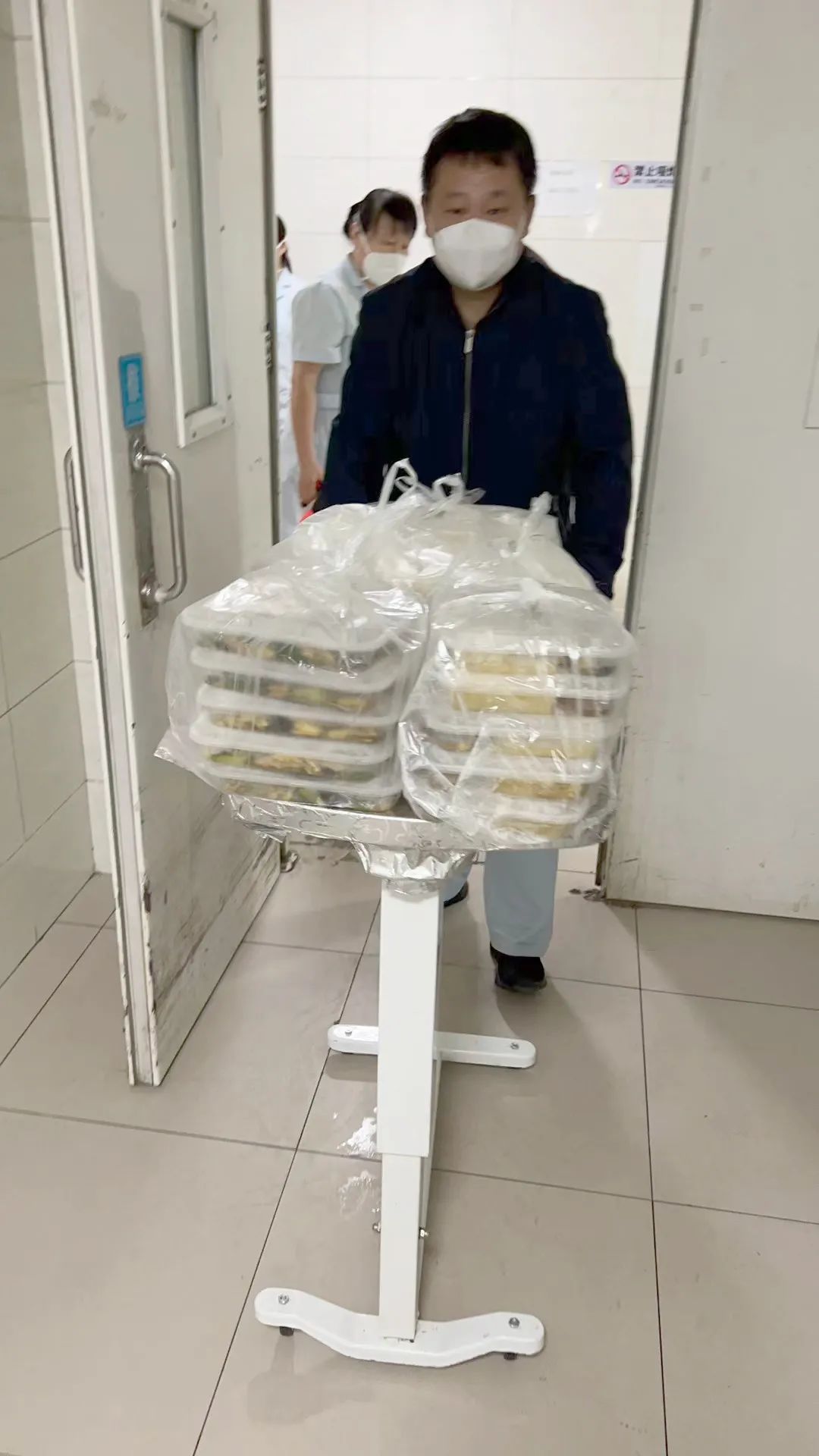 随着北京疫情逐渐严重,科室护士和送餐工人随时都有不能来上班的。工人不能上来送餐,我们来帮忙准时的让患者吃上饭;个别护士不能来上班,我们帮助安抚、照顾病人;走廊、病房专门负责消毒的护工,消杀工作不放过每一个角落,保证科室卫生达标合格……